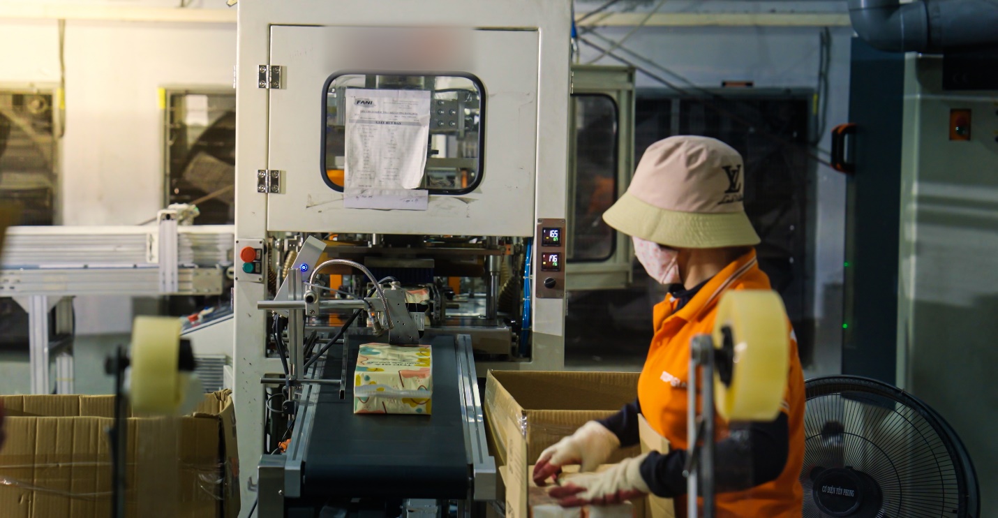 Theo ông Nguyễn Anh Phương, Trưởng phòng Pháp chế của Công ty TNHH Thương mại và Xuất nhập khẩu FANI (đơn vị sở hữu thương hiệu Top Gia), tất cả sản phẩm giấy của công ty đều được sản xuất theo hướng tối đa hoá khép kín. Nguyên liệu đầu vào là phôi giấy được kiểm soát nghiêm ngặt, trải qua các công đoạn cuộn giấy, dập logo công ty, cắt, xếp và đóng gói.