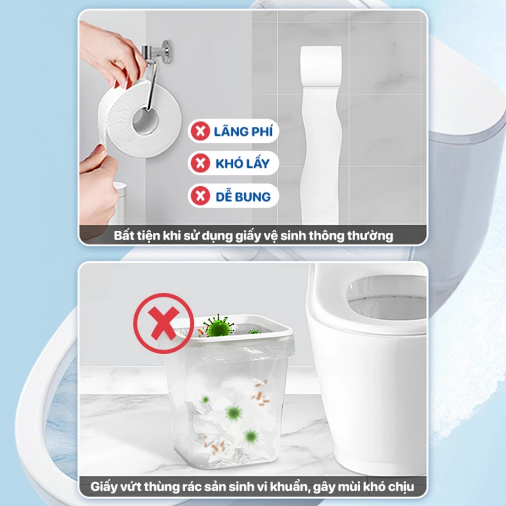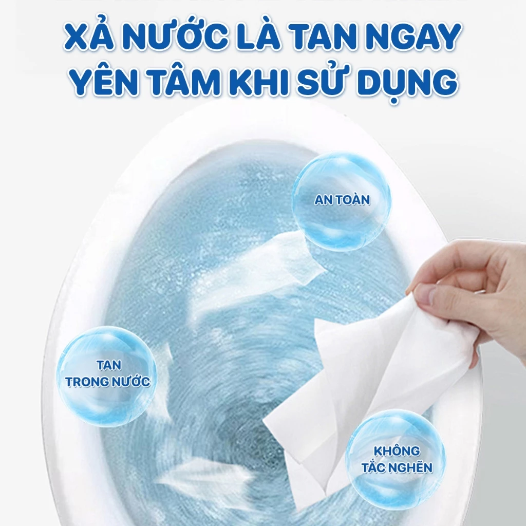 - Không cần thùng rác cạnh bồn cầu – xả trực tiếp, tan ngay trong nước.