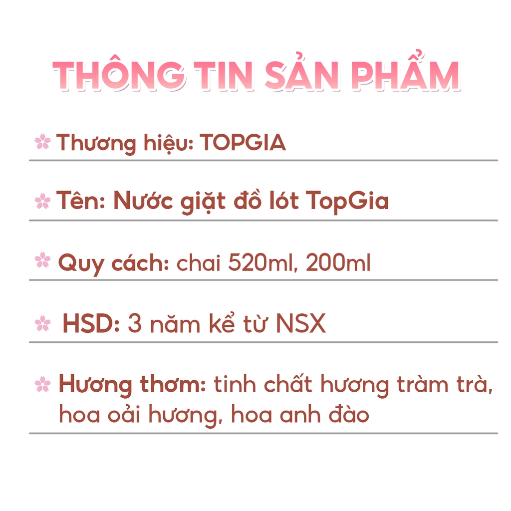 - Tên sản phẩm: Nước giặt đồ lót TopGia